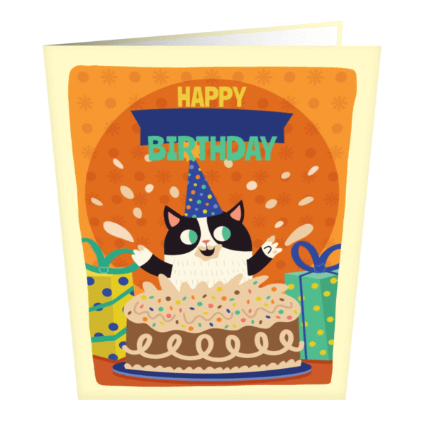 Ultimately, the Cat With Cake Greeting Card is a celebration of the messy, loud, wonderful parts of life that make birthdays memorable. It celebrates the frosting on your nose, the crooked party hats, and the friends who jump out of cakes to surprise you. It creates a moment of pure connection, bridging the distance between two people with laughter and color. To give the Cat With Cake Greeting Card is to give a high-five in an envelope, a sweet treat for the eyes, and a lasting memory of a birthday done right.