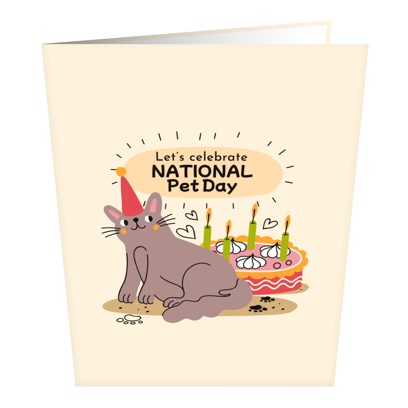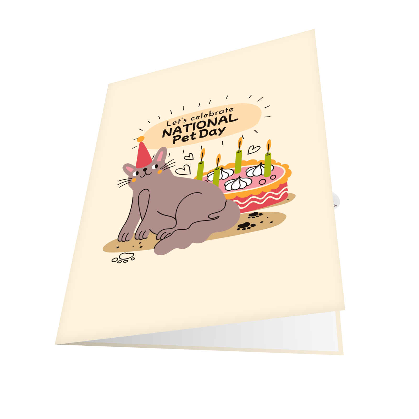Open the card, and a delicate 3D scene rises into view. The cat sits alone yet content, perhaps gazing at a candle, holding a tiny gift, or surrounded by subtle decorations like stars, hearts, or falling confetti. The setting feels minimal but meaningful, emphasizing emotion over extravagance and warmth over noise.