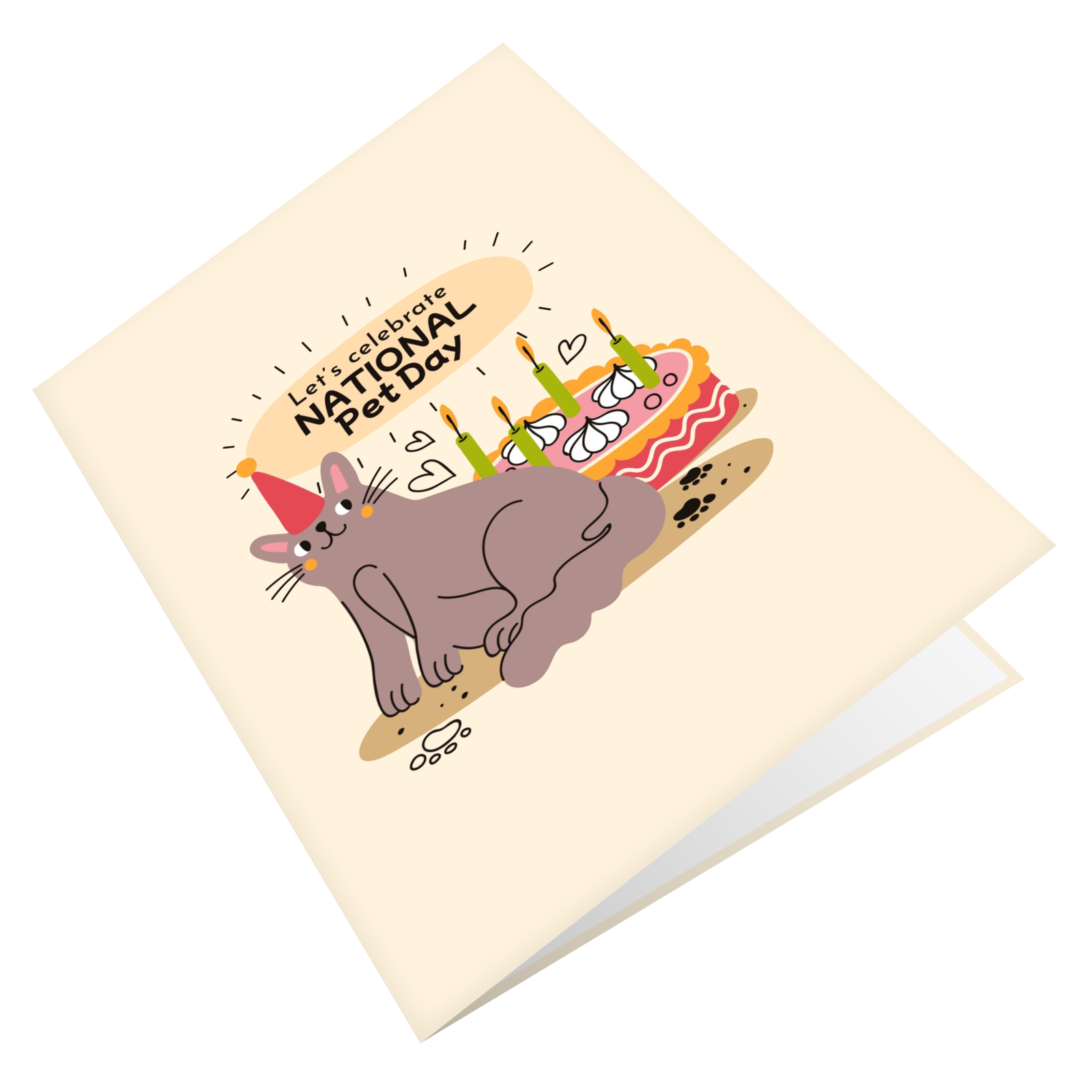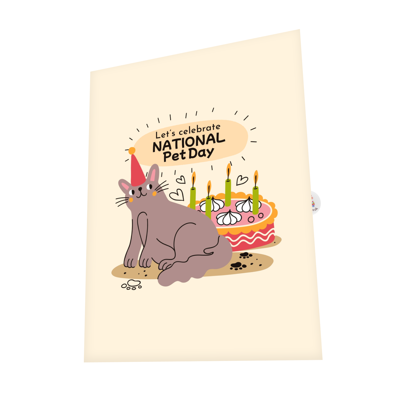 Each layer adds depth without overwhelming the scene the soft curves of the cat, the textured cake, the gentle glow of the candle, and the calm spacing between elements. Everything is designed to evoke a sense of quiet happiness and thoughtful presence. A dedicated space is reserved for your personal message, ready to carry words of comfort, love, and gentle celebration.